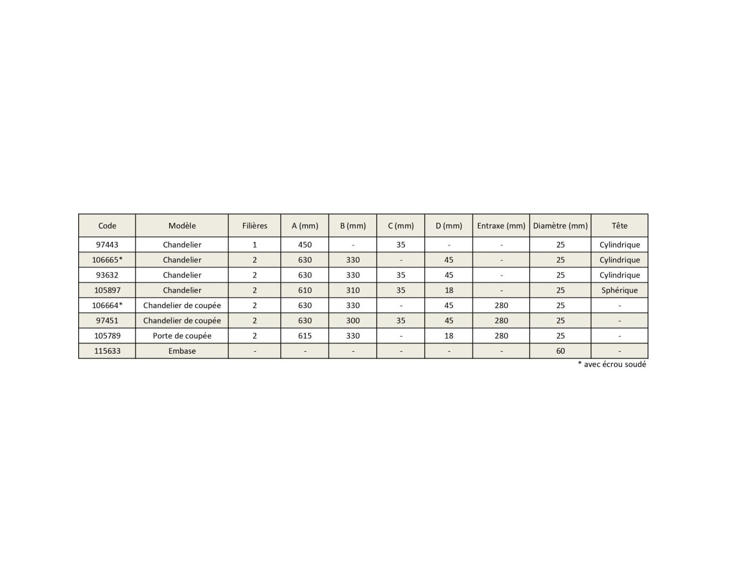 Chandelier bout rond 610 mm avec perçage | Tête sphérique