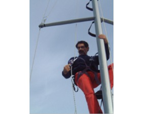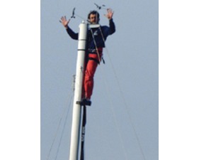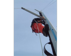 Matériaux souples et accessoires à toutes épreuves : l'échelle de mât est incassable. Équipé du harnais et de l'anti-chute, le navigateur est assuré de ne pas tomber.