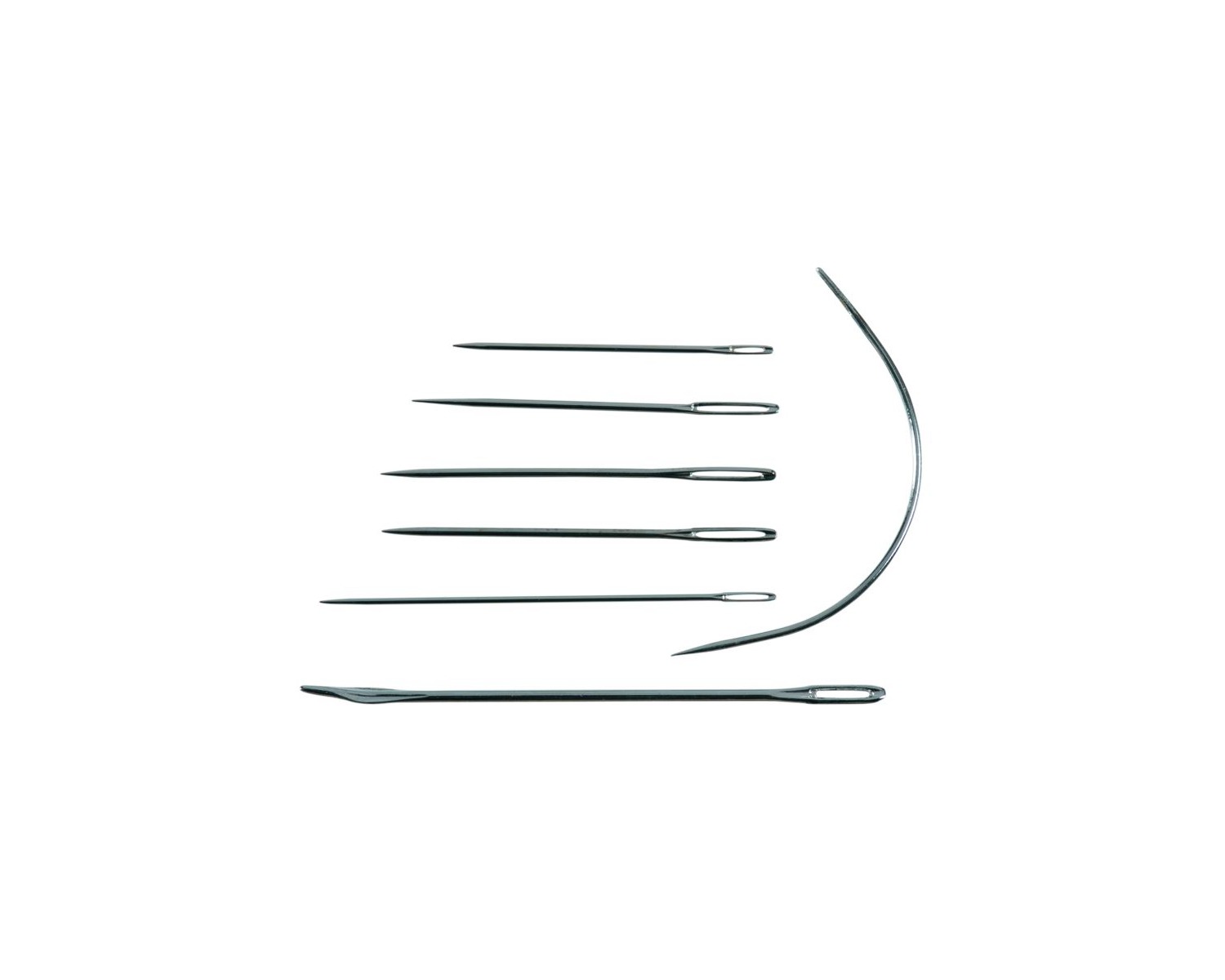 Kit de 7 Aiguilles en acier trempé nickelé pour une pénétration facile de l'aiguille. Chas parfaitement lisse pour un enfilage facile et une bonne protection du fil. Tête arrondie sans aspérité.