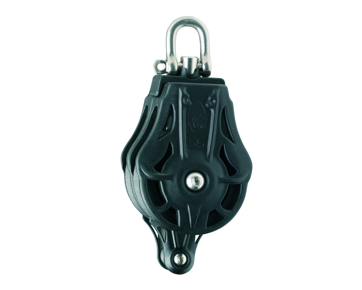 Rotation du réa sur l'axe inox. Protection du réa par les flasques. Réa démontable pour l'entretien. Large choix de fixations grâce à la tête universelle.