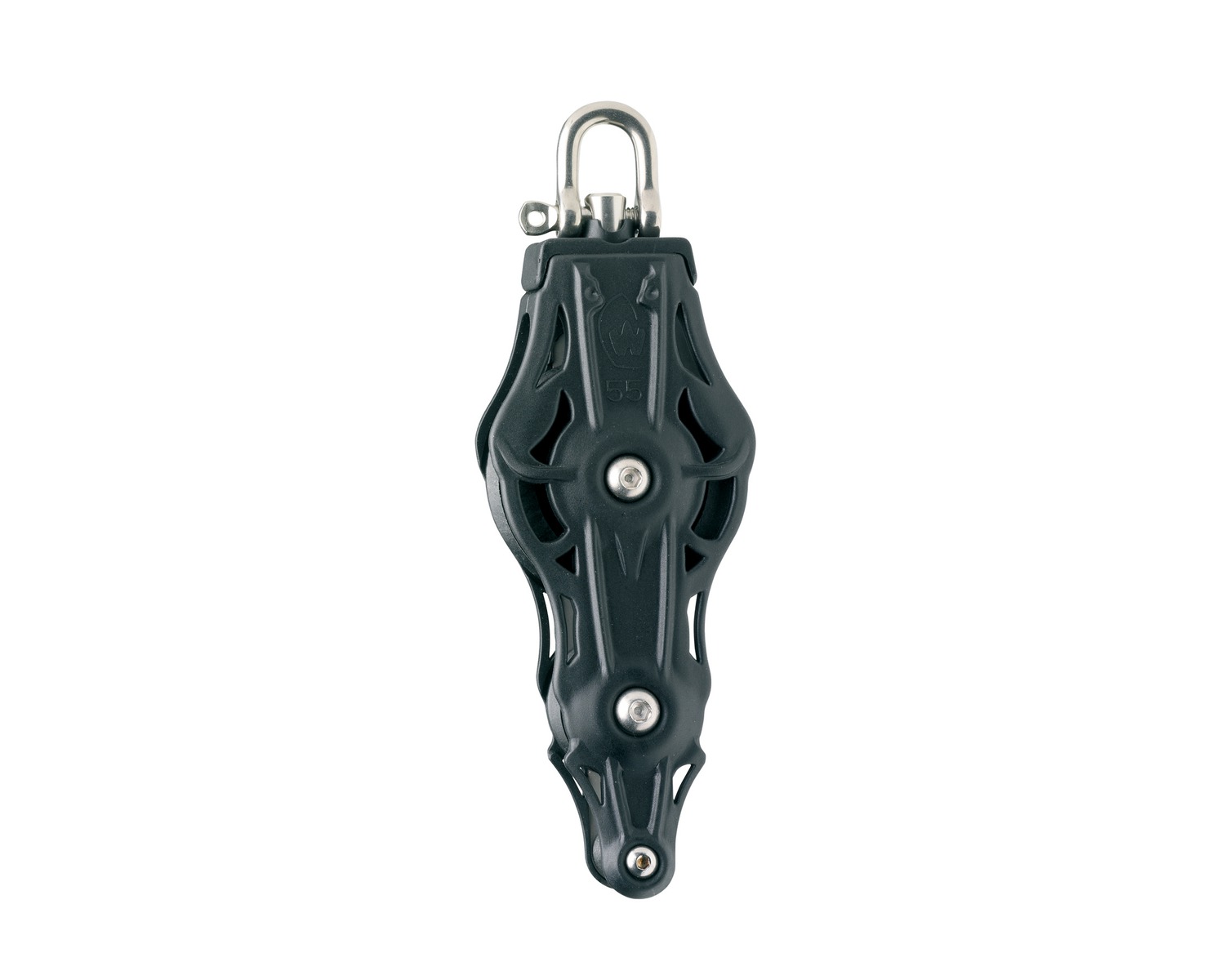 Rotation du réa sur l'axe inox. Protection du réa par les flasques. Réa démontable pour l'entretien. Large choix de fixations grâce à la tête universelle.