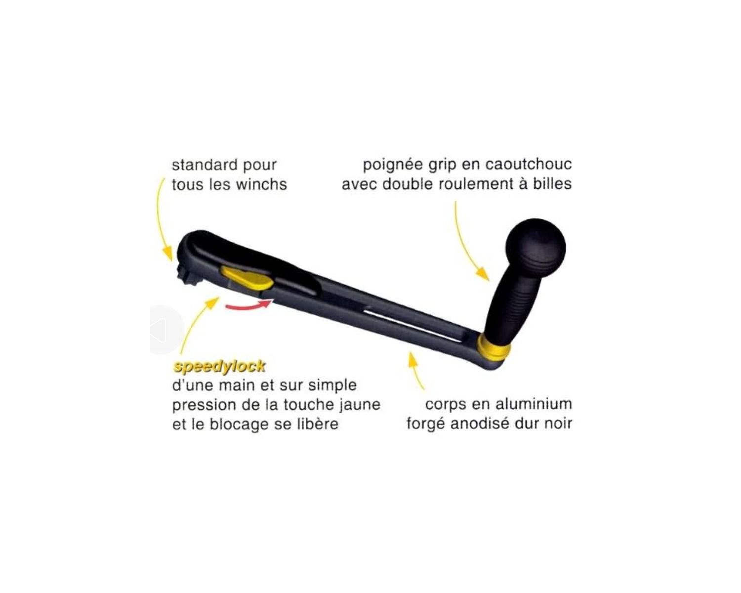 Cette manivelle de 250mm est dotée du système Speedylock permettant le verrouillage et le déverrouillage d'une seule main. Légère et constituée d'une poignée grip en caoutchouc, elle allie facilité d'utilisation et performance.
