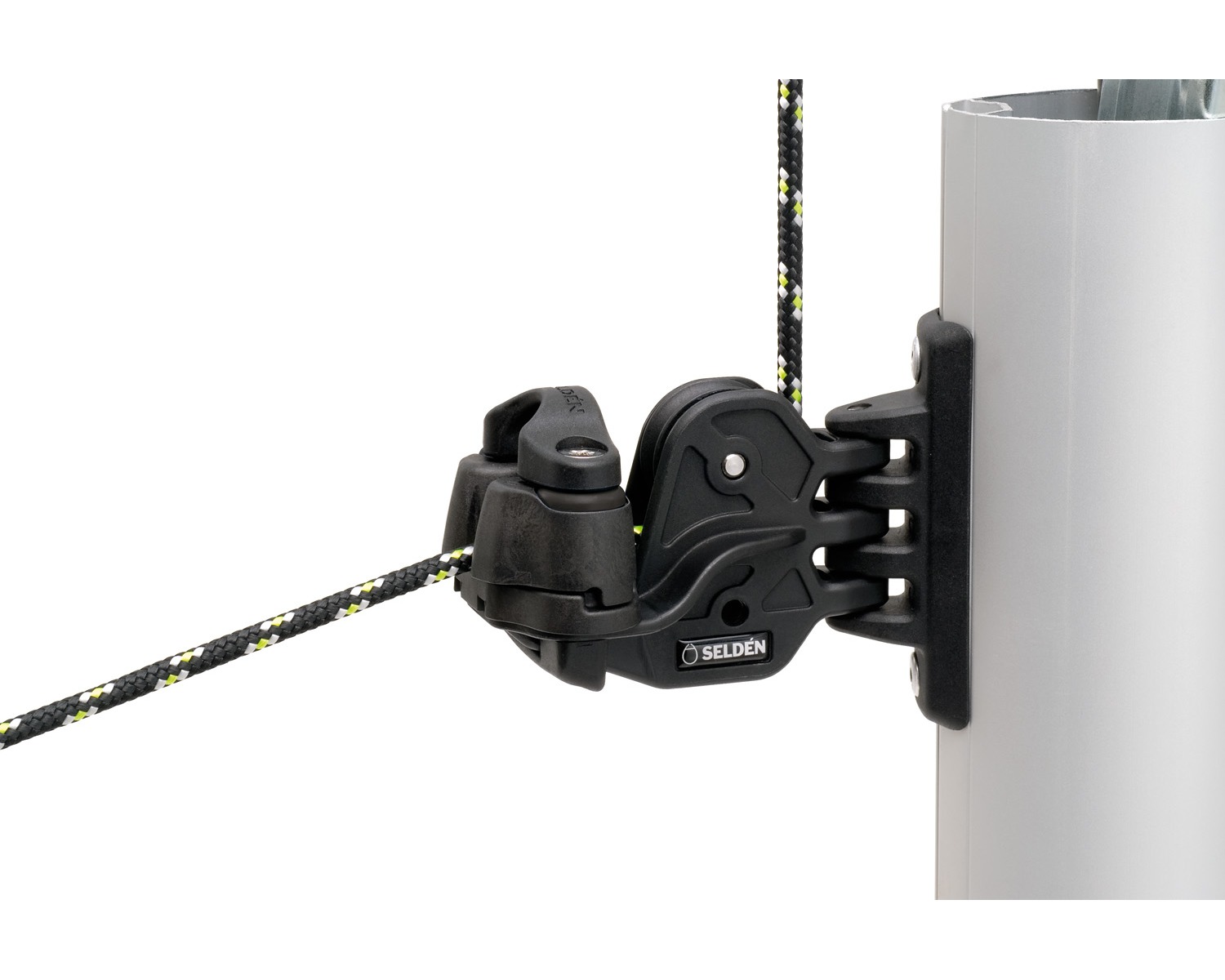 La tournelle de mât pivotante pour taquet coinceur 27 mm. s'articule pour orienter parfaitement le cordage vers le régleur. Elle sert principalement au guidage de bosse de Cunningham, de spinnaker, système de hale-bas inversé «Gnav », etc.