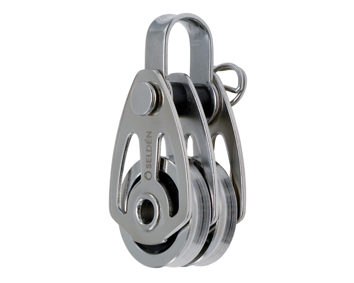 Les poulies à billes Selden possèdent des billes en inox et un réa renforcé en fibre de verre pour une meilleure résistance même sous forte charge dynamique.
