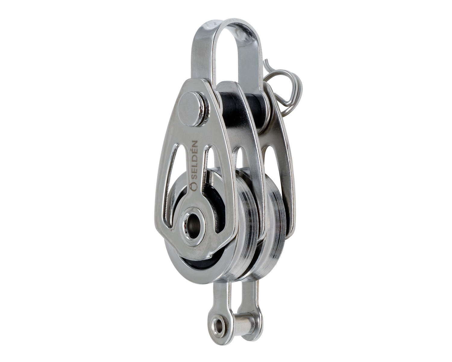 Les poulies à billes Selden possèdent des billes en inox et un réa renforcé en fibre de verre pour une meilleure résistance même sous forte charge dynamique.