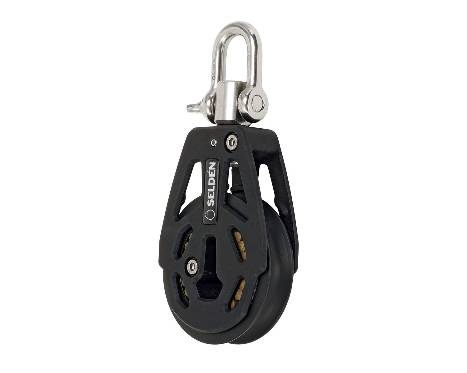La poulie Seldén à rouleaux a été conçue pour les applications dynamiques à contraintes élevées telles que les palans de pataras en cascade, les écoutes, les palans de spinnaker et les drisses. Ces poulies se distinguent par leur faible coefficient de friction et le poids réduit. Joues usinées en aluminium anodisé noir et rouleaux en Torlon®.
