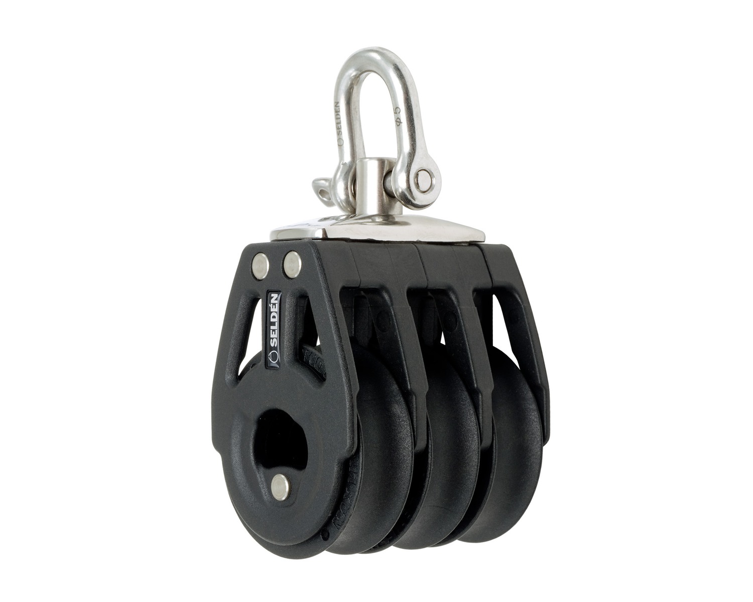Poulie Triple à émerillon avec manille 5 mm, ø Réa 40mm