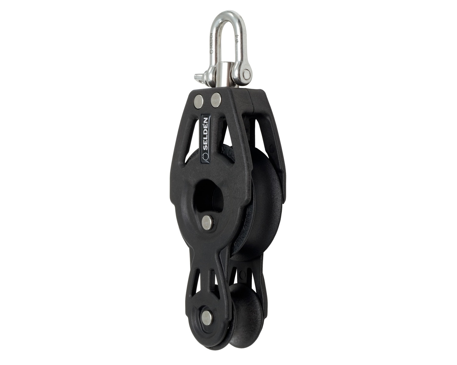 Les poulies à billes Selden possèdent des billes en inox et un réa renforcé en fibre de verre pour une meilleure résistance même sous forte charge dynamique.
