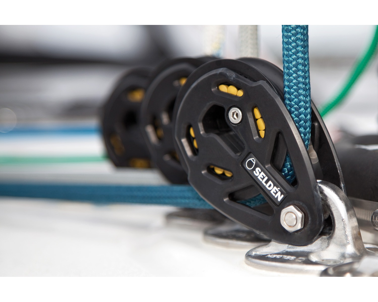 La poulie Seldén à rouleaux a été conçue pour les applications dynamiques à contraintes élevées telles que les palans de pataras en cascade, les écoutes, les palans de spinnaker et les drisses. Ces poulies se distinguent par leur faible coefficient de friction et le poids réduit. Joues usinées en aluminium anodisé noir et rouleaux en Torlon®.