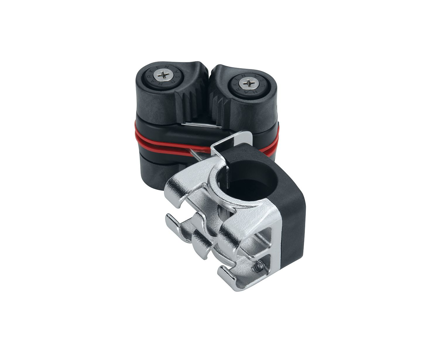 À l’arrière, un filoir de chandelier associé à un double taquet coinceur Cam-Matic Harken permet de bloquer la bosse continue.