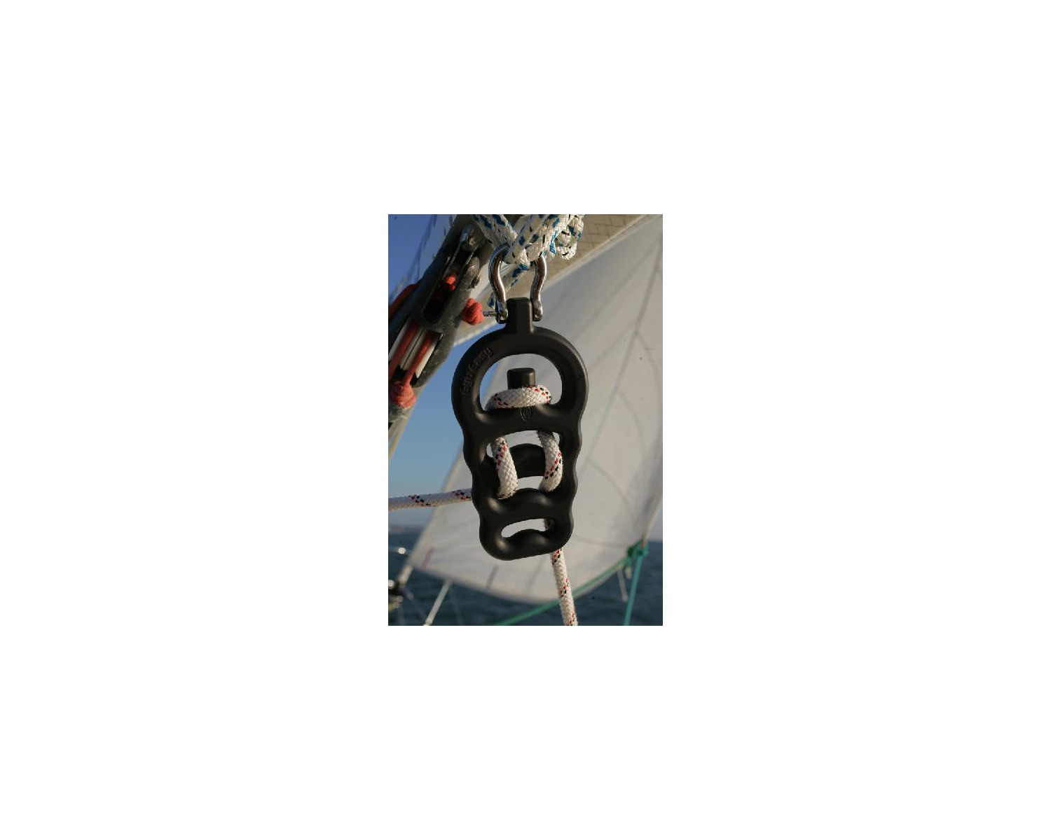 Facilité d'installation : Léger et peu encombrant, le Gyb'Easy s'installe facilement sur la bôme grâce à une manille frappée sur un pontet. Il est utilisable aussi bien sur les gréements modernes qu'anciens. Pour s'adapter aux différents plans de pont, deux configurations d'installation sont possibles: soit en mode palan (un renvoi au cockpit), soit avec deux renvois vers le cockpit.