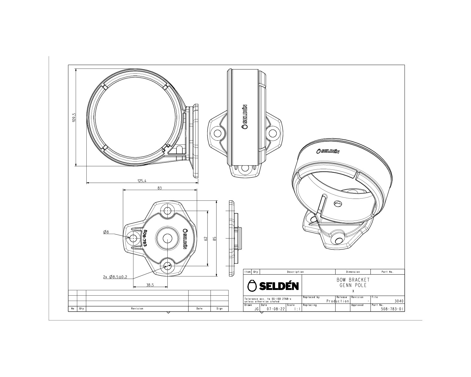 Le support d'étrave est un anneau inox avec un coussinet intérieur en polyamide à travers lequel le bout-dehors coulisse pour se mettre en position.