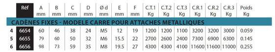 • Modèle carré pour attaches métalliques (chape) et sangles