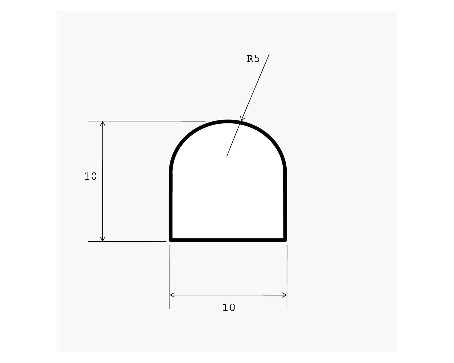Joint néoprène de section semi-ronde ø10mm (base) et hauteur 10mm.