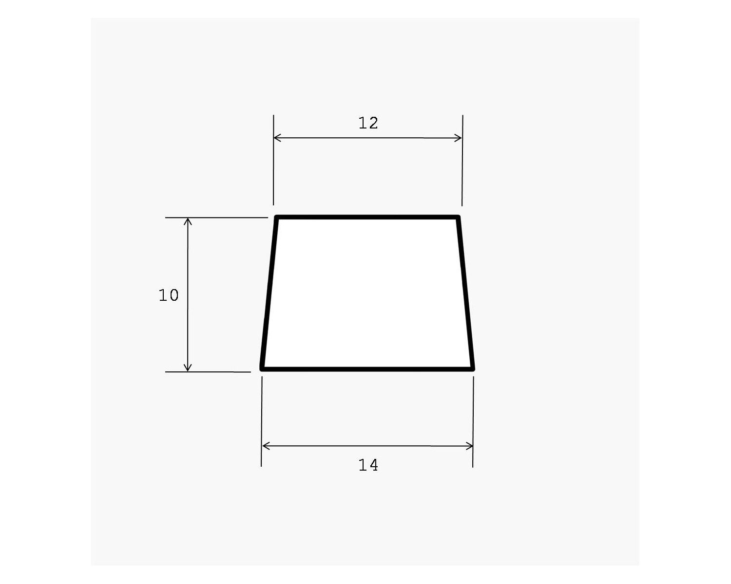 Joint néoprène de section trapézoidale (base 13 et 12mm, hauteur 10mm).