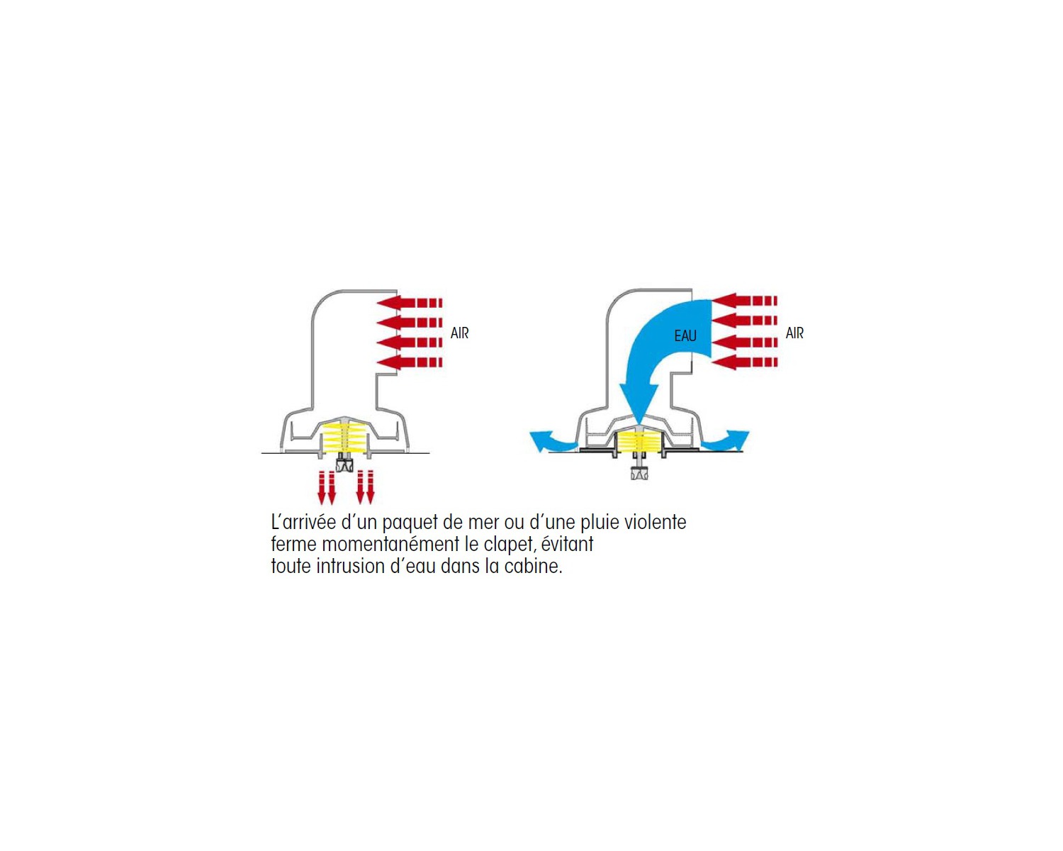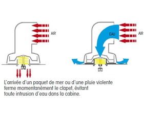 • Aération continue : en navigation, au mouillage ou en hivernage, la manche à air reste constamment ouverte.