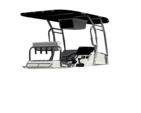 Toile zippée en acrylique Sunbrella imperméable et traitée anti-UV. Partie haute démontable pour faciliter le transport ou passer sous un pont.