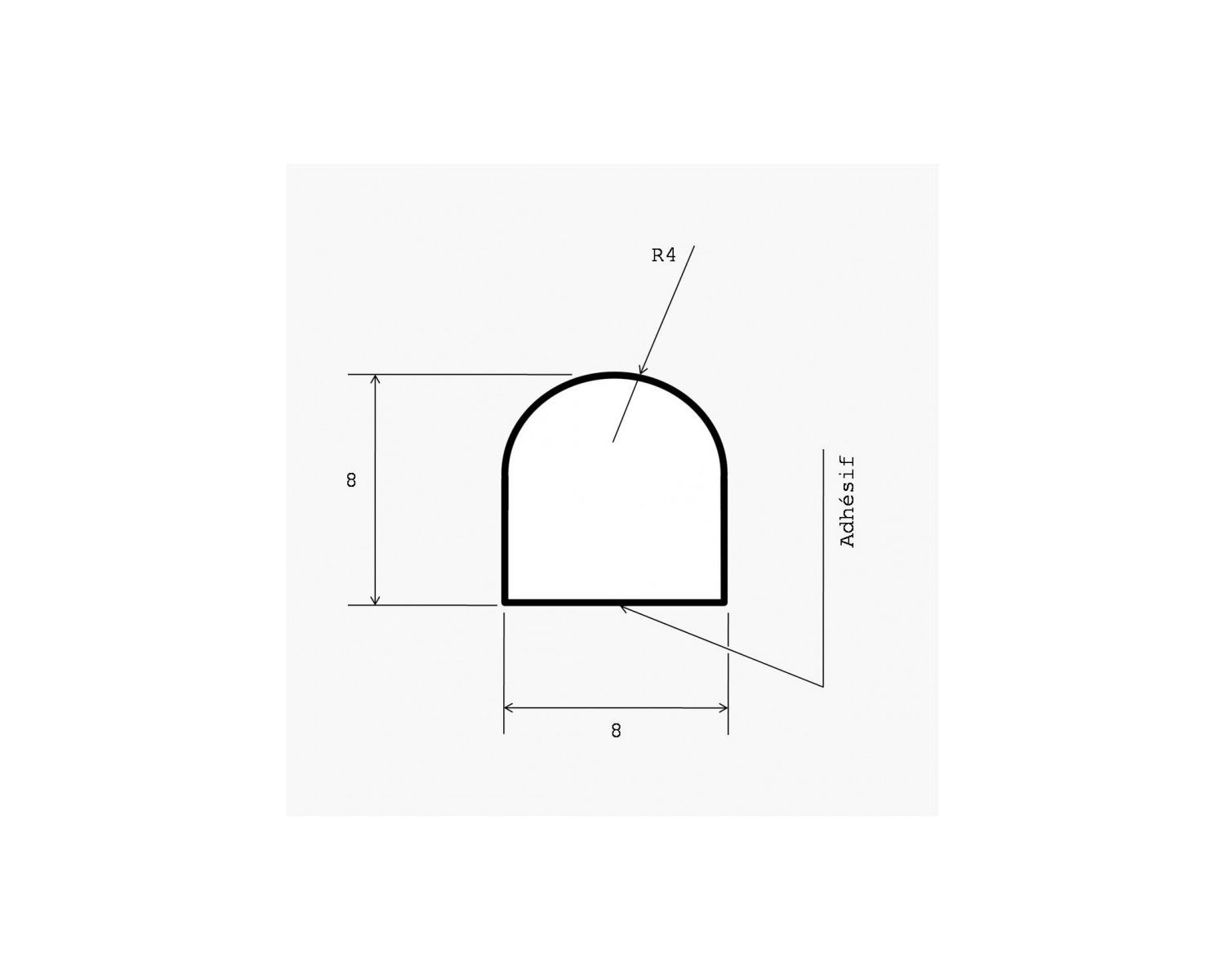 Joint adhésif de section 8mm à la base et sur la partie arrondie