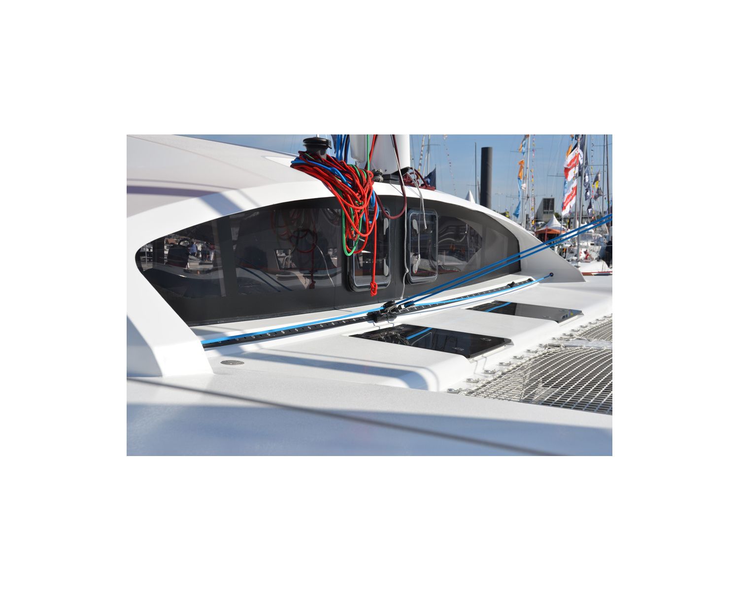 L'innovation se met au service de l'esthétique : l'utilisation d'un vitrage PMMA épais et rigide (15 mm), monté sur des charnières spécifiques tout inox affleurantes, rend possible l'absence totale de châssis d'ouvrant et crée une nouvelle harmonie sur le pont.