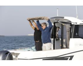 Ouverture prévue de la toile pour accéder au fly selon configuration du bateau, fermeture par zip.
