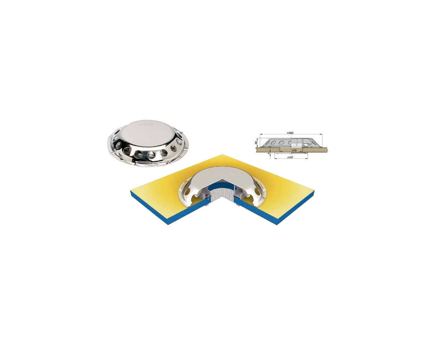 Etanche au ruissellement, fournie avec une grille ronde pour la finition coté cabine
