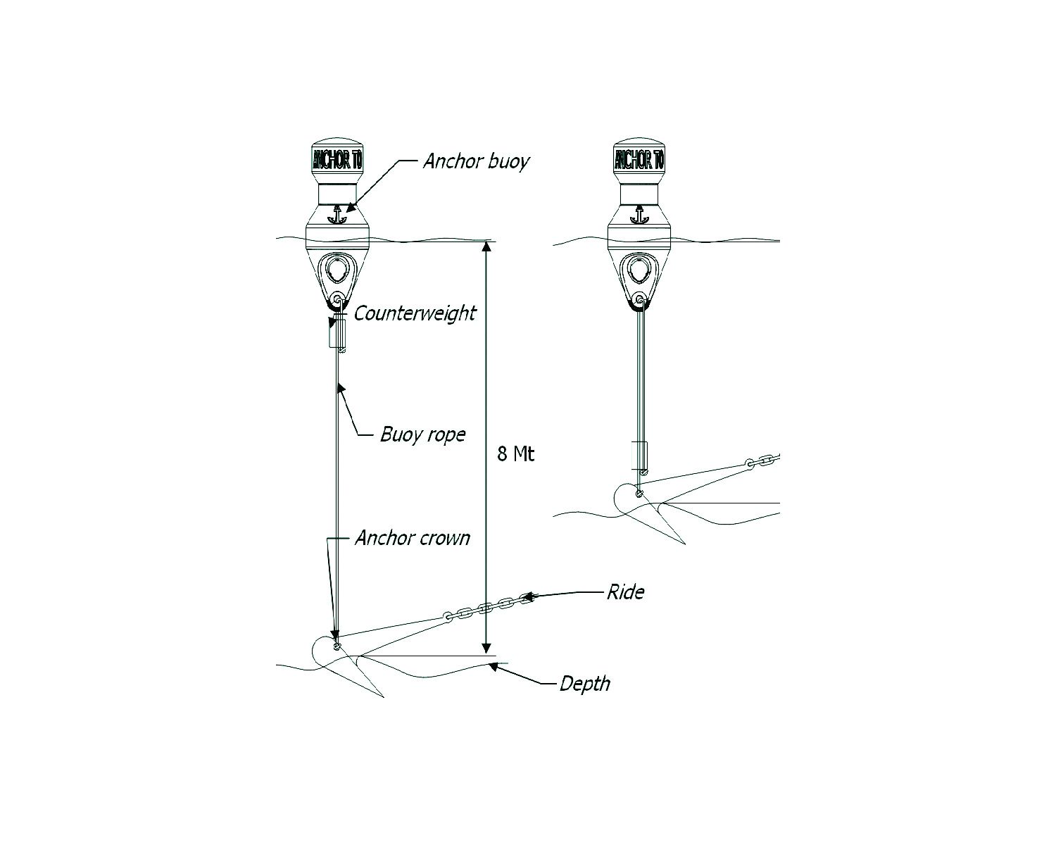 Il marque la position exacte de l'ancre avec un contrepoids en plomb qui ajuste automatiquement la longueur de la ligne à des profondeurs comprises entre 4 et 10 m.