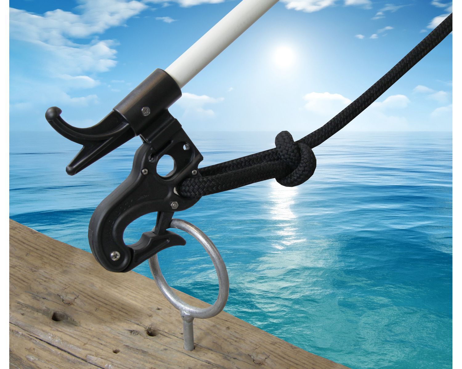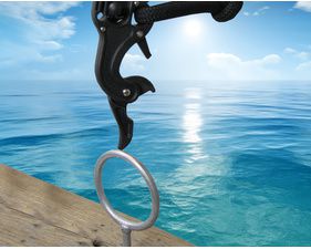 Sécurisant, ce mousqueton automatique fonctionne dans les deux sens : pour amarrer et pour larguer, même sous forte charge