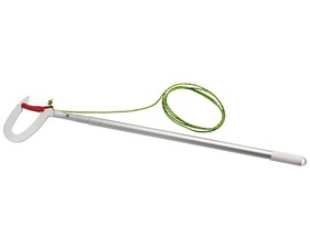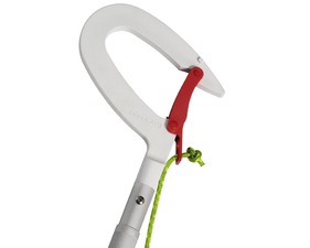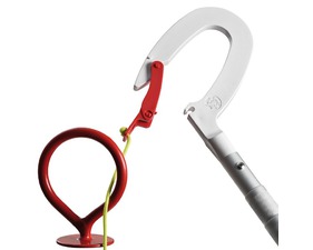 En plus de sa fonction de gaffe, le crochet permet d’effectuer en un seul mouvement l’accrochage de l’œillet et la récupération du bout d’amarrage.
