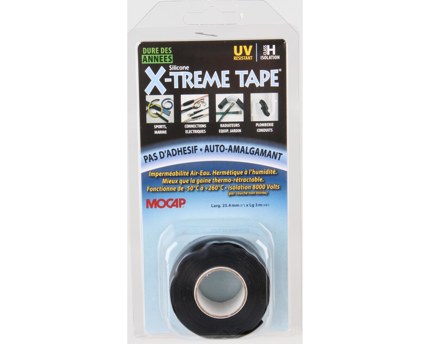 Ruban autovulcanisant sans adhésif. Etirez, enroulez sous tension et il va instantanément former une gaine parfaitement étanche à l'eau, à l'air qui résiste aux acides, huiles, solvants les plus agressifs et protège des UV.