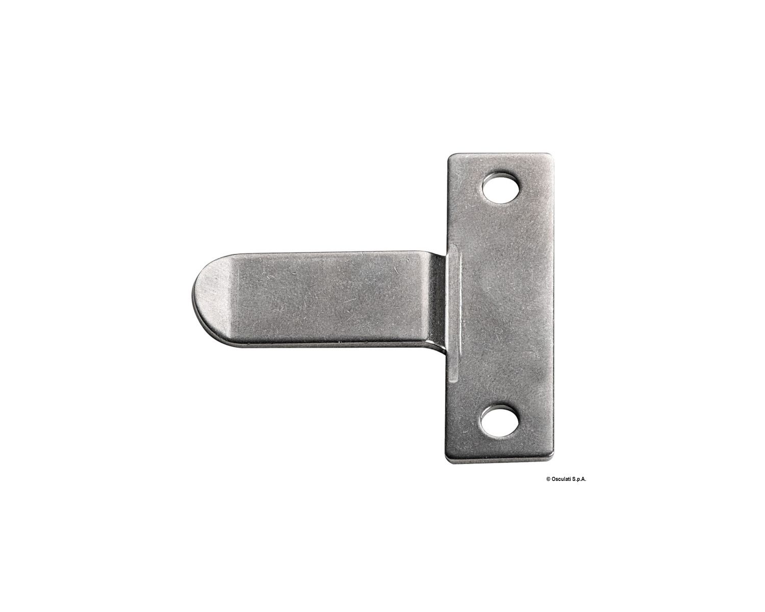En inox brillanté. Le composant "A" doit être fixé à l'embarcation, le composant "B" doit être fixé au dossier du coussin. Ils s'accouplent par encastrement.