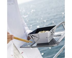 Assiette plate carrée en mélamine de la ligne LOMBOK, antidérapante. Conçue pour les marins modernes, et pour les nouvelles lignes de bateaux. Fabriquée en mélamine de haute qualité, certifiée et sans substances toxiques (BPA Free), l’assiette plate de la ligne Lombok est en mélamine noire et possède un anneau antidérapant à la base.