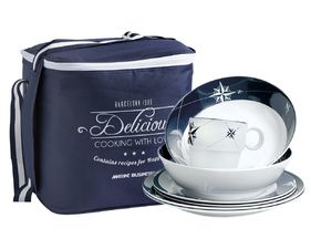 Vaisselle NORTH WIND lot de 24 pièces en mélamine : 6 Mugs, 6 Assiettes plates, 6 Assiettes creuses, 6 Assiettes à dessert. Une large gamme de vaisselle et d'accessoires pour la table "spécial bateau"