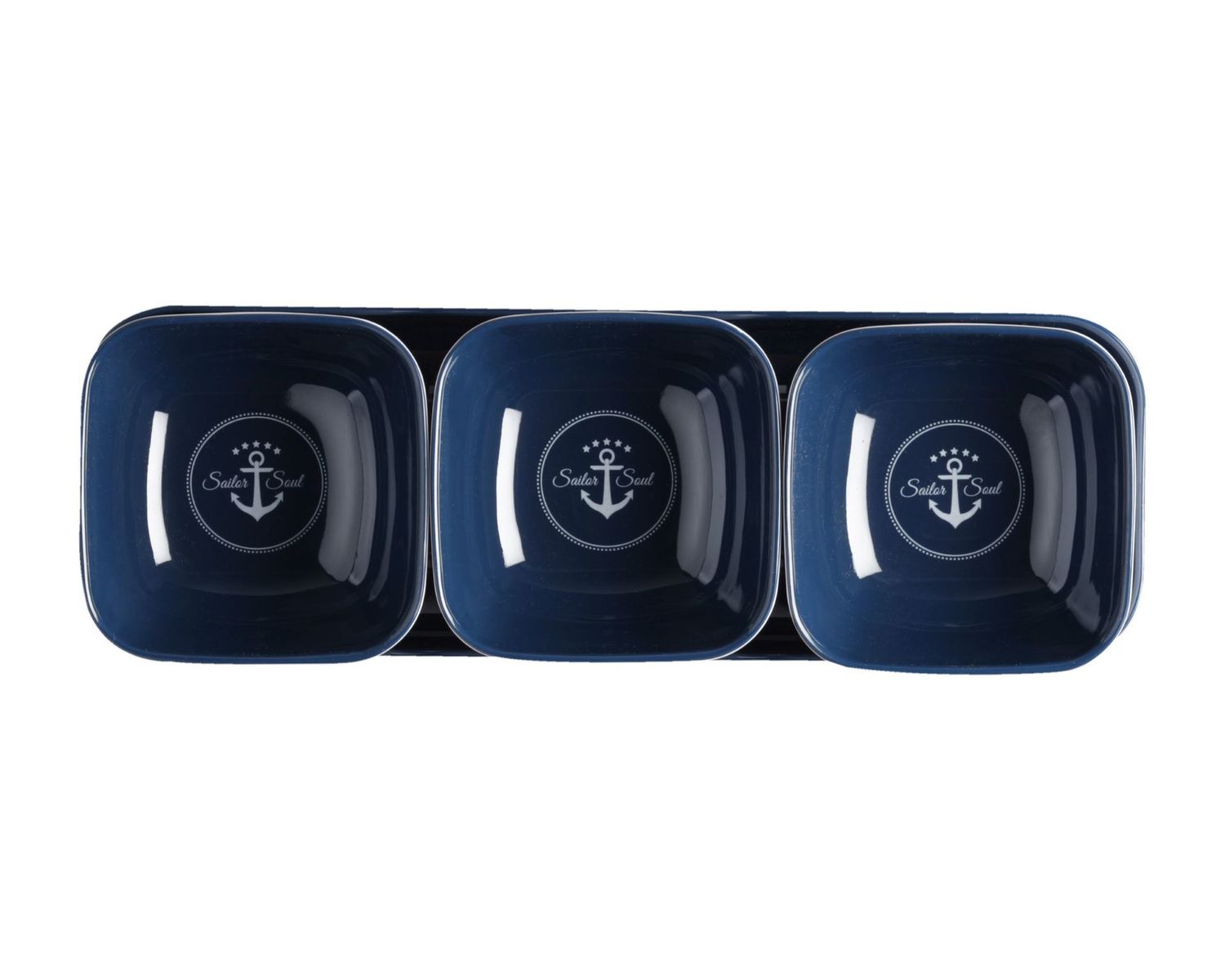 Le set apéritif SAILOR SOUL est un pratique service idéal pour l'apéritif à bord, composé de 4 pièces (un plateau et trois coupelles).