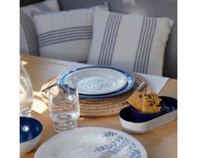 Set apéritif bleu en mélamine avec 2 bols et un plateau, composé à 100% de mélamine.