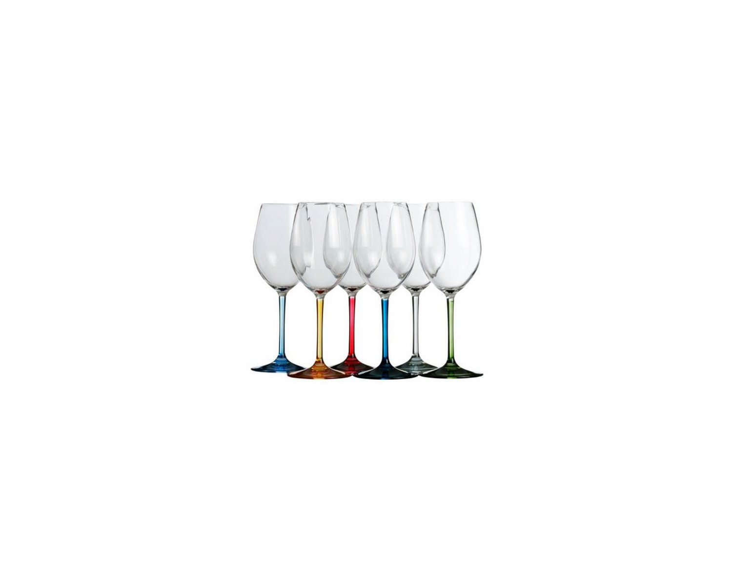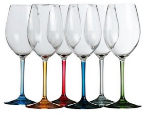 Des verres à eau et à vin, avec une base de différentes couleurs, pour égayer vos fêtes à bord.