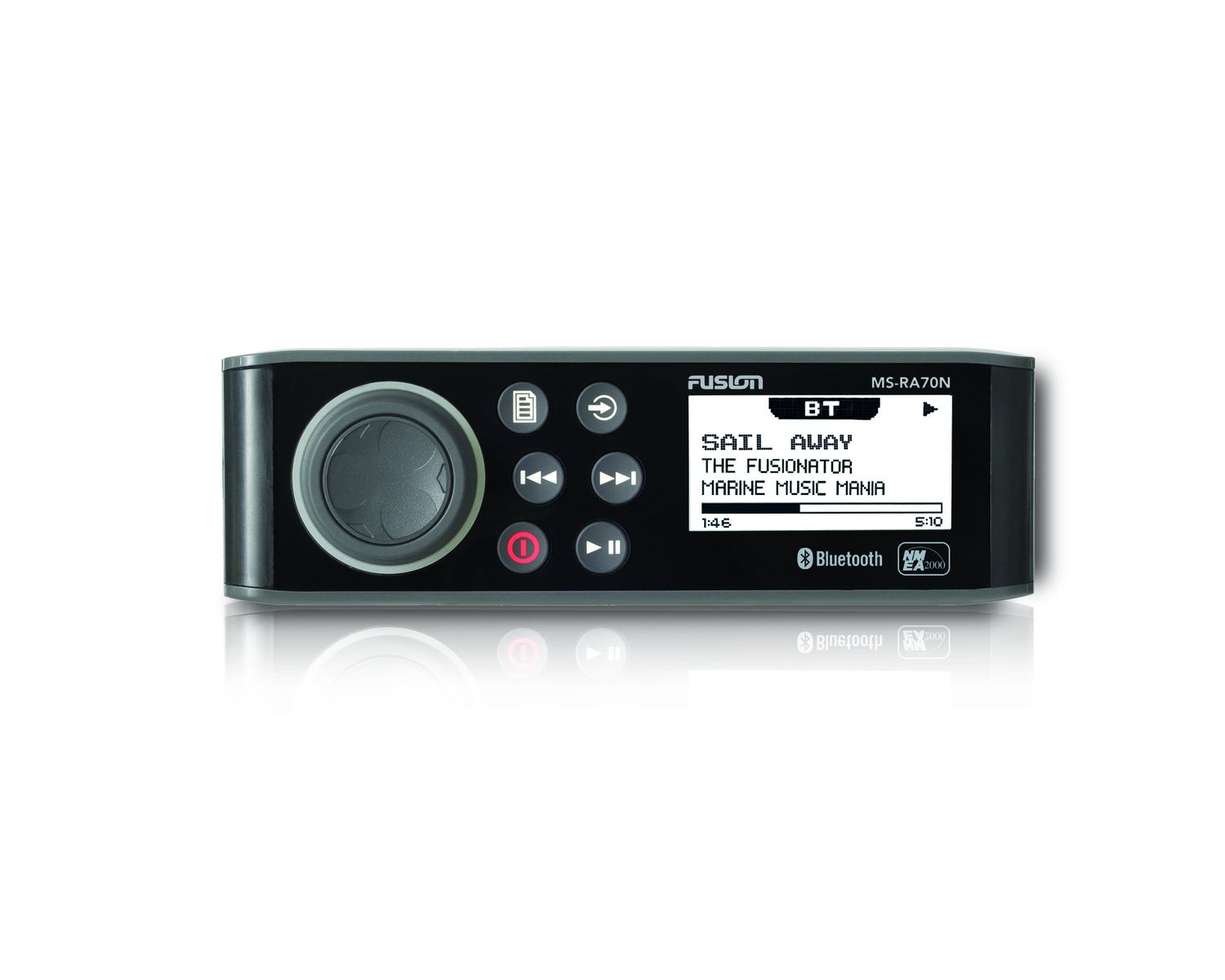 Le MS-RA70N est un produit certifié Fusion-Link Wired NMEA 2000 câblé et est compatible avec une gamme d'afficheurs multifonctions parmi les plus performants au monde pour l'affichage à l'écran. Lorsque vous associez le MS-RA70N à un traceur de cartes ou à un sondeur pris en charge, vous transmettez votre musique au grand écran, ce qui vous permet de garder un œil sur les graphiques ou le poisson tout en sautant des pistes ou en ajustant le volume en même temps. Pour un contrôle audio localisé, une télécommande FUSION NRX Series peut être installée et connectée à un réseau NMEA 2000. (Remarque: la télécommande NRX doit être intégrée à un réseau alimenté. Si vous prévoyez d’utiliser le MS-RA70N et une télécommande de la série NRX sur un réseau autonome, un câblage supplémentaire est nécessaire pour alimenter le réseau).