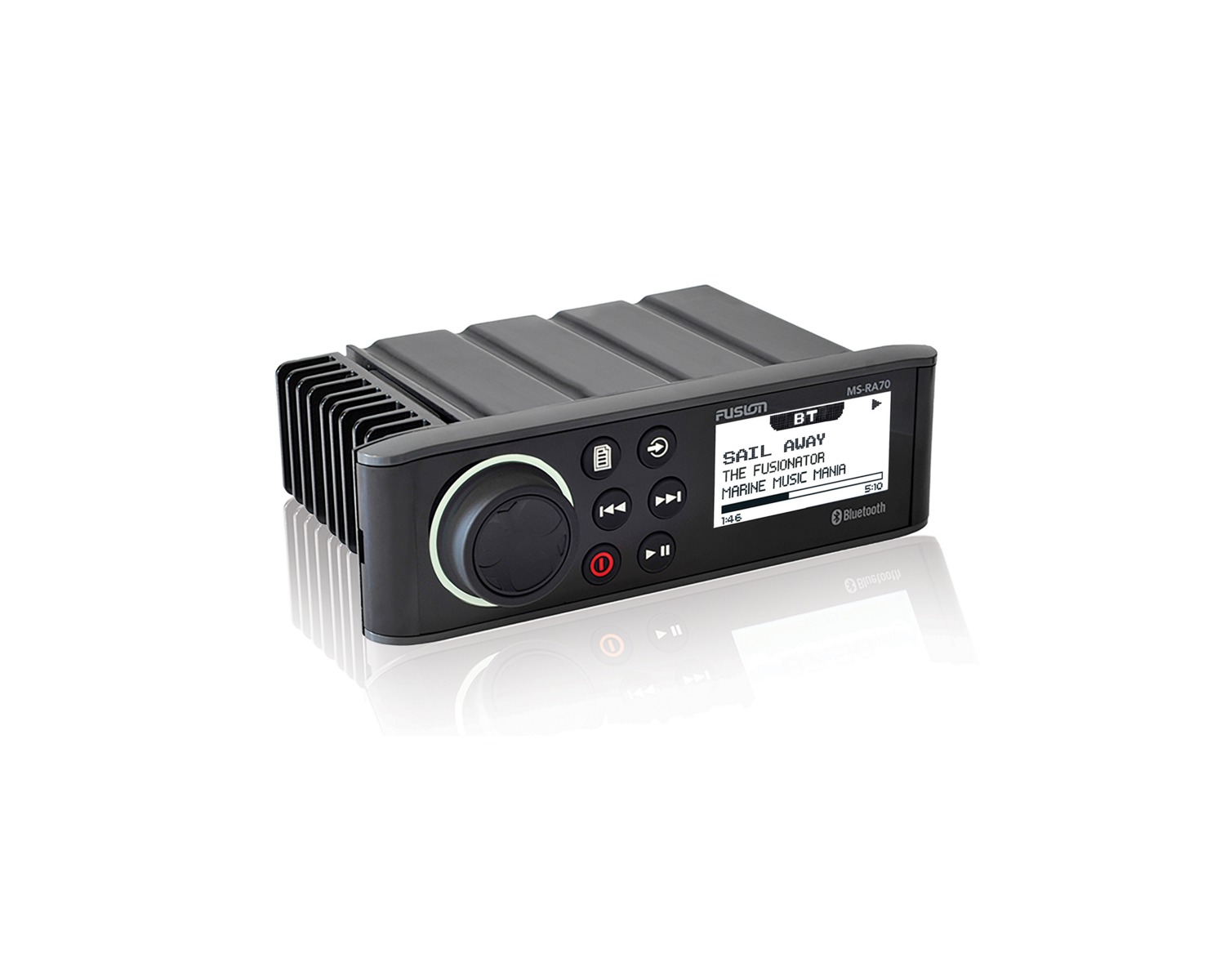 Voici la série 70 de FUSION, la plus élégante chaîne stéréo embarquée aux innombrables qualités, conçue pour offrir une expérience de divertissement en mer de qualité grâce à quelques-unes des plus récentes technologies marines. Conçue pour remplacer facilement toute chaîne stéréo à la norme DIN non navalisée sans avoir besoin de réorganiser l'espace sur le tableau de bord.