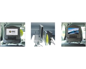 Écran 7", 16/9. TFT LCD, réseolution: 1440 x 234 pixels. Lecteur DVD Mpeg 4, CD, CD-R (W) et CD photos.