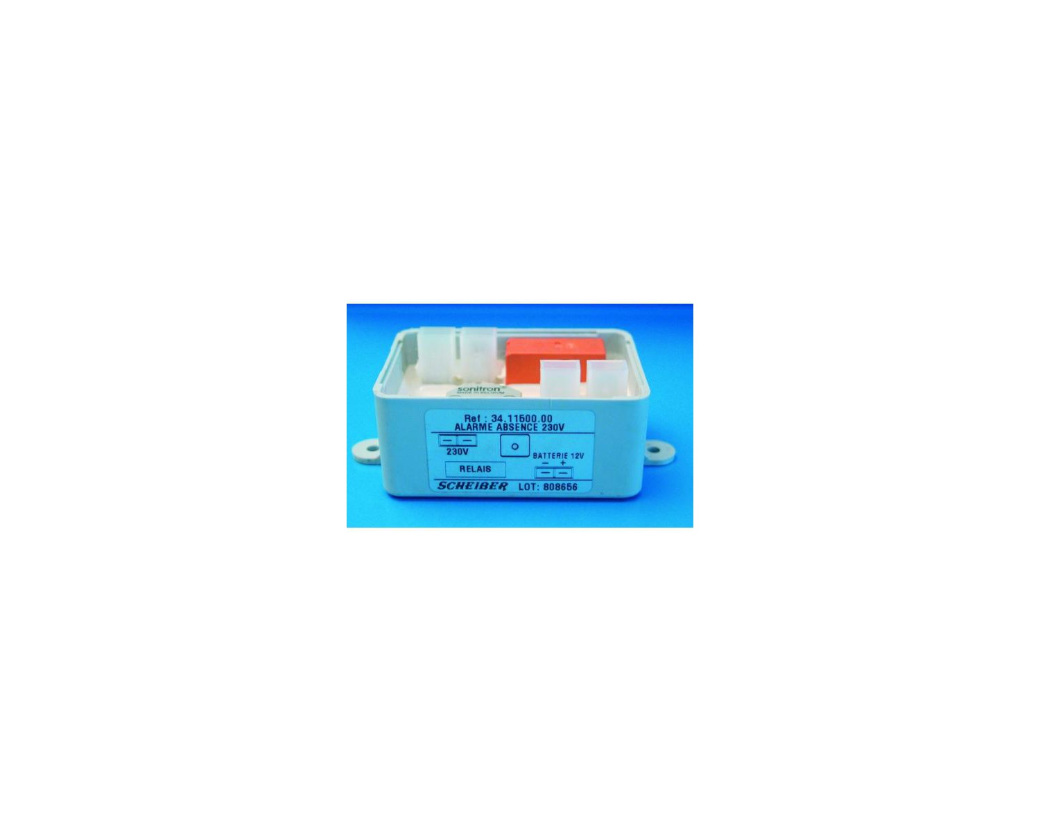 Un buzzer se déclenche lorsque le 230V n'est plus présent.