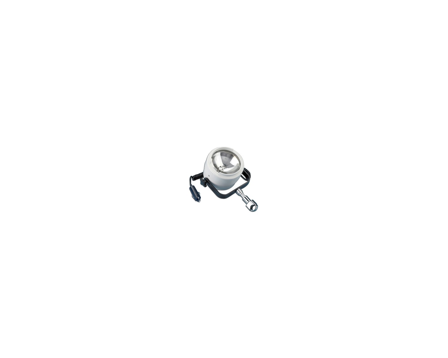 Projecteur 100W avec alimentation prise 12v . Doté de deux modes éclairage, faisceau concentré ou large il est Orientable à 360°. Démontable, se fixe sur une attache chromée pour balcon.