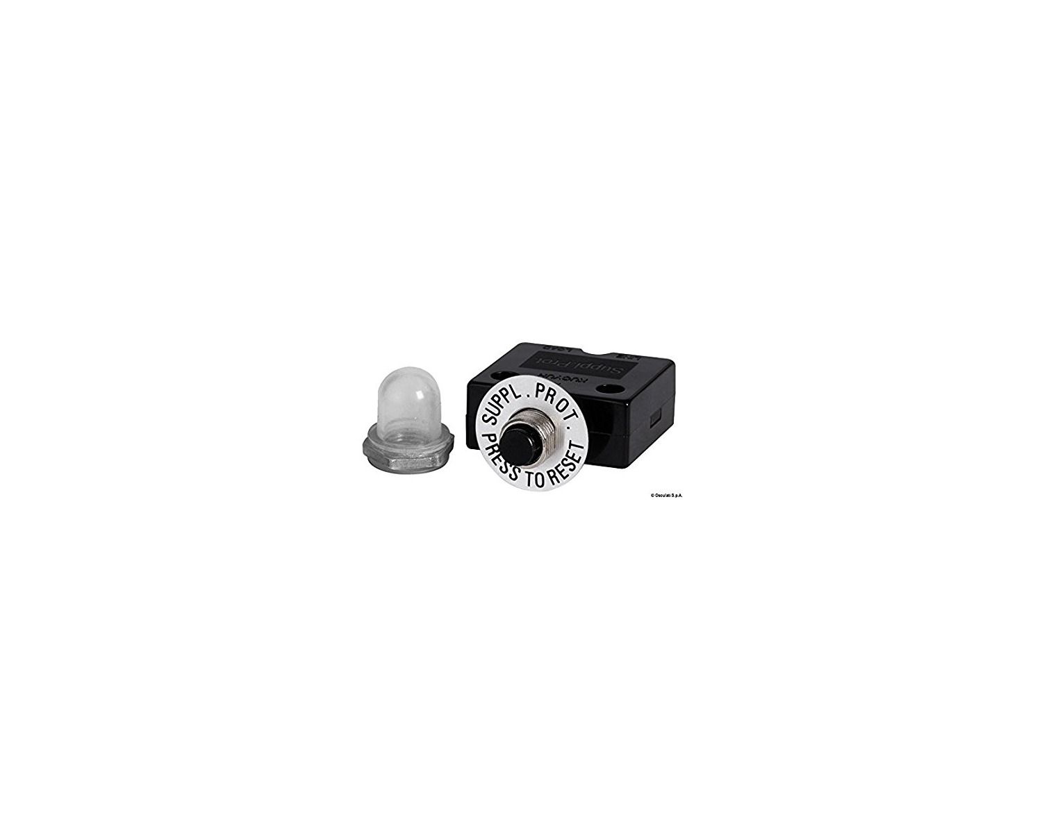 Ce disjoncteur thermique OSCULATI de 10 A est équipé de capuchons étanches en silicone transparent.