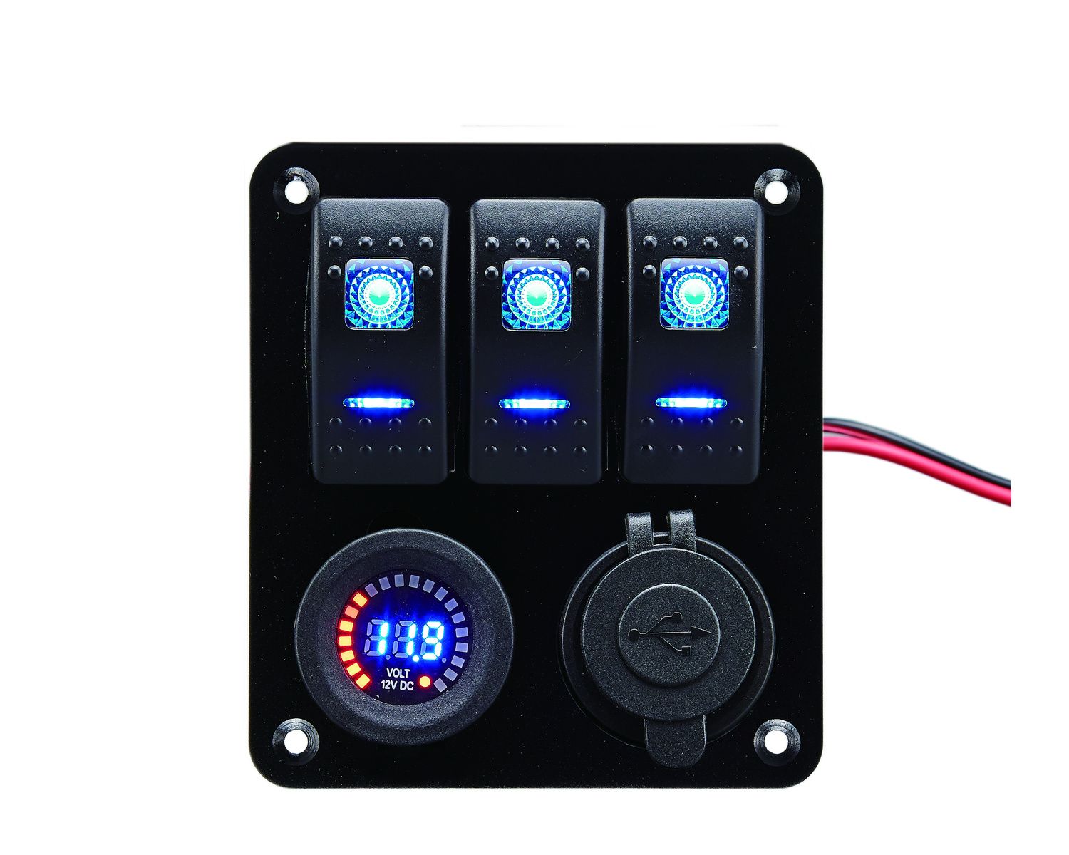 Tableau électrique 12V 3 inter. LED + 2 USB 3.1A + voltmètre