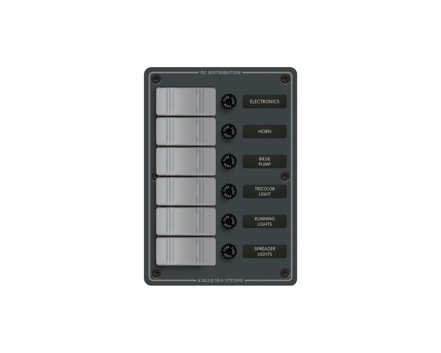 BLUE SEA Contura tableau à fusible 6 interrupteurs Installation sur le pont. Résistant aux embruns et à la pluie.