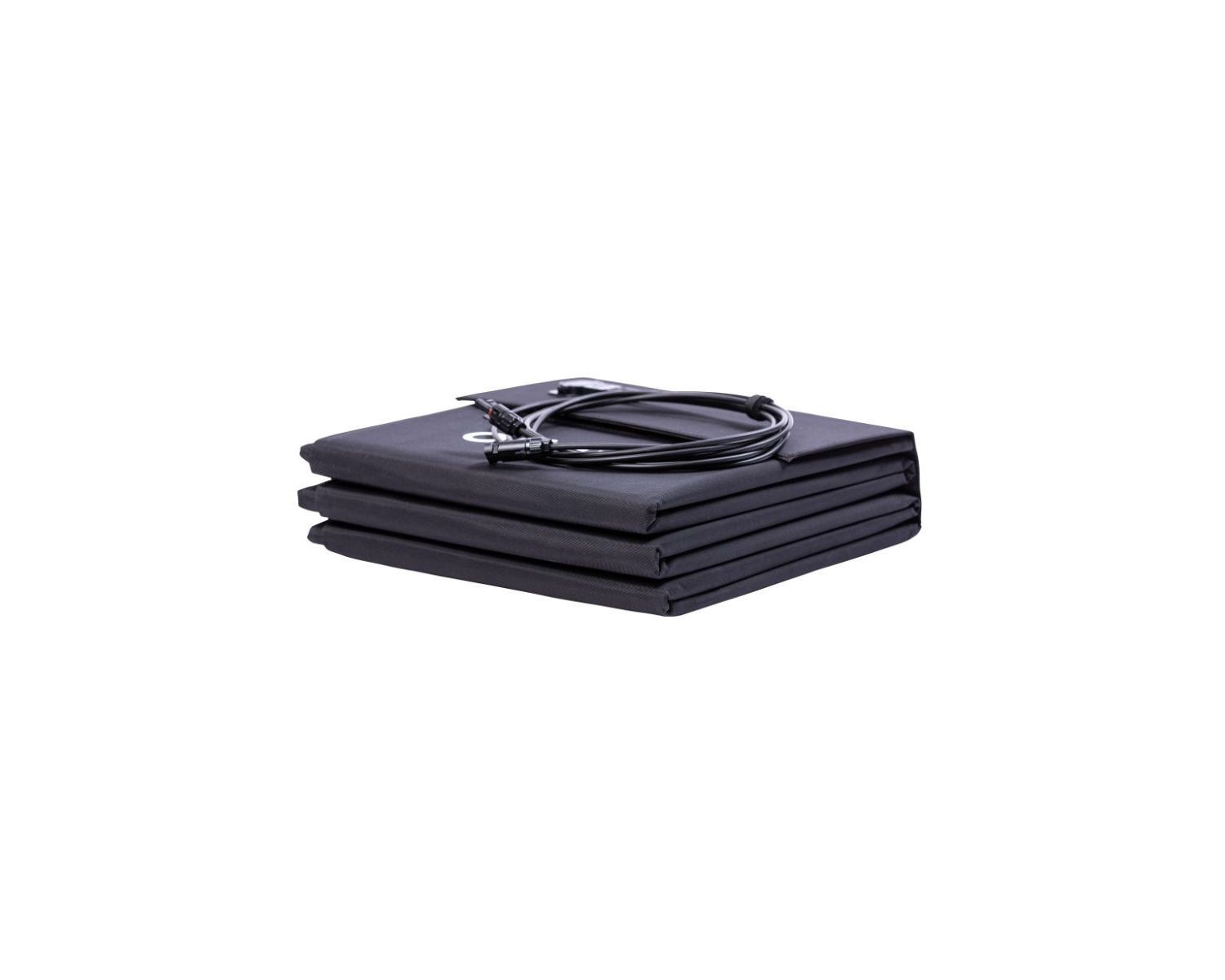 En commandant le panneau solaire pliant 400W vous obtiendrez : un panneau solaire Orium, un adaptateur MC4, une sacoche de transport, un câble de 2 mètres soudés au panneau et une notice d'utilisation. Tout le nécessaire pour faire fonctionner le panneau solaire est fourni à l'intérieur du colis.