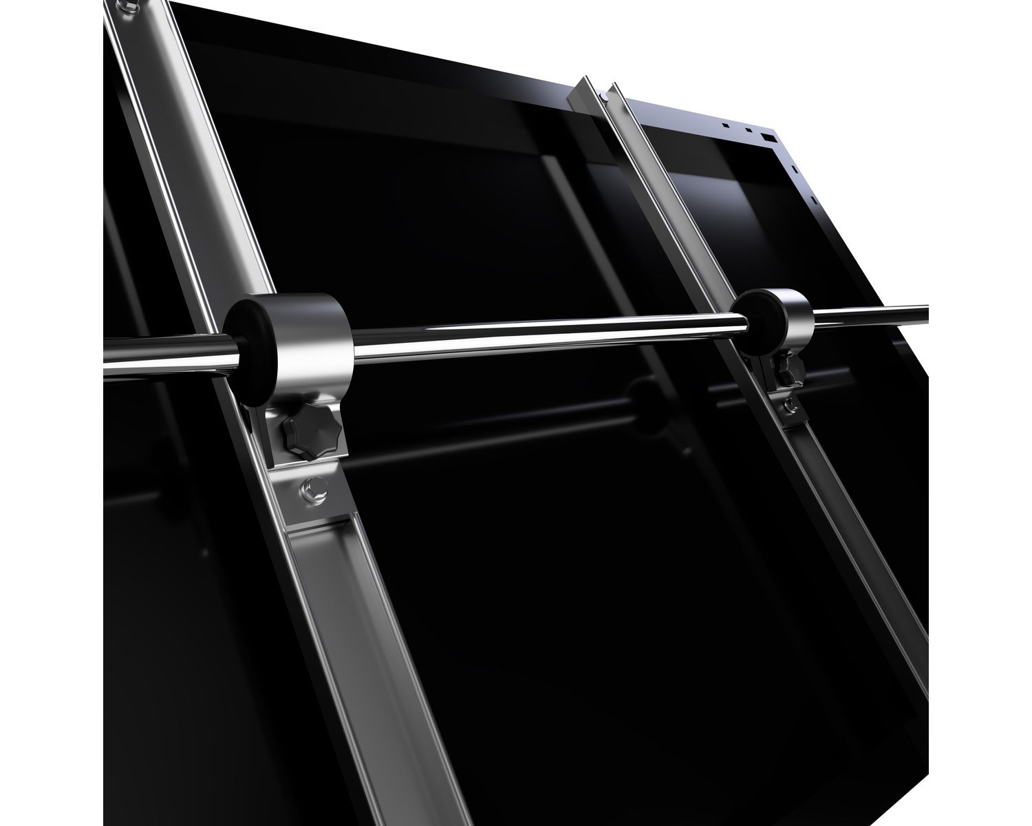 Jeu de 2 traverses de 775mm de long avec rotules pour montage d’un panneau solaire sur garde-corps.