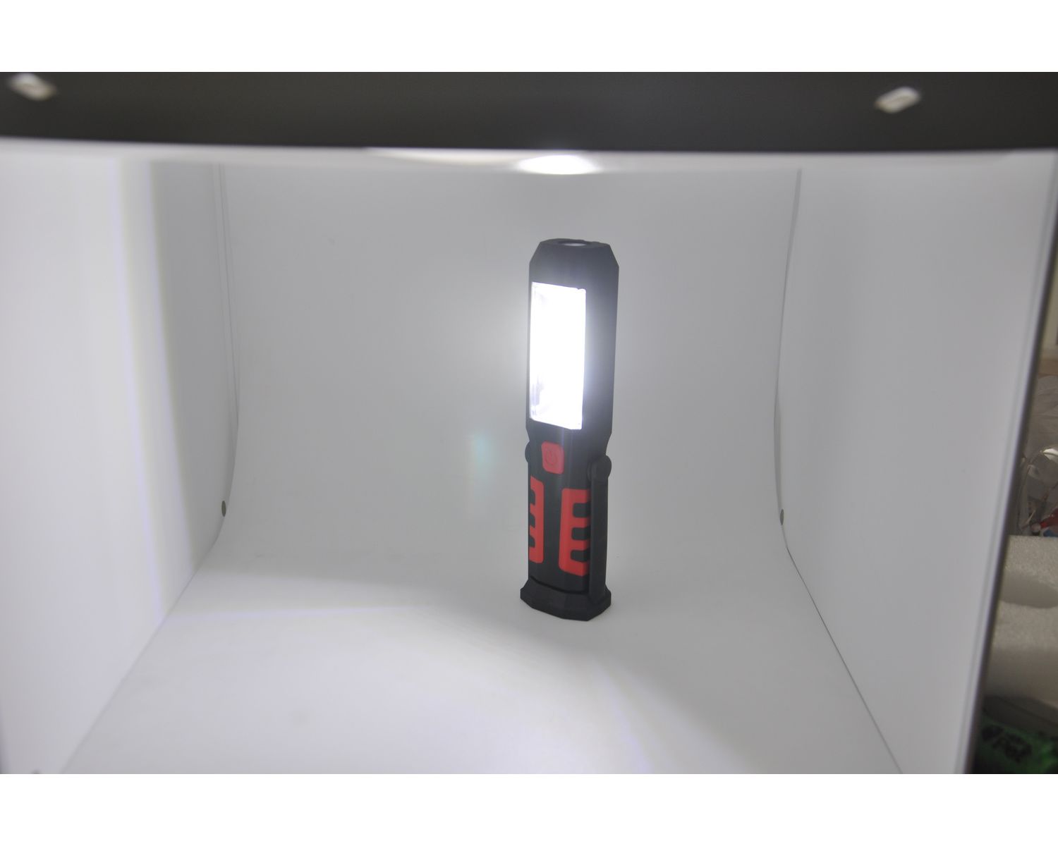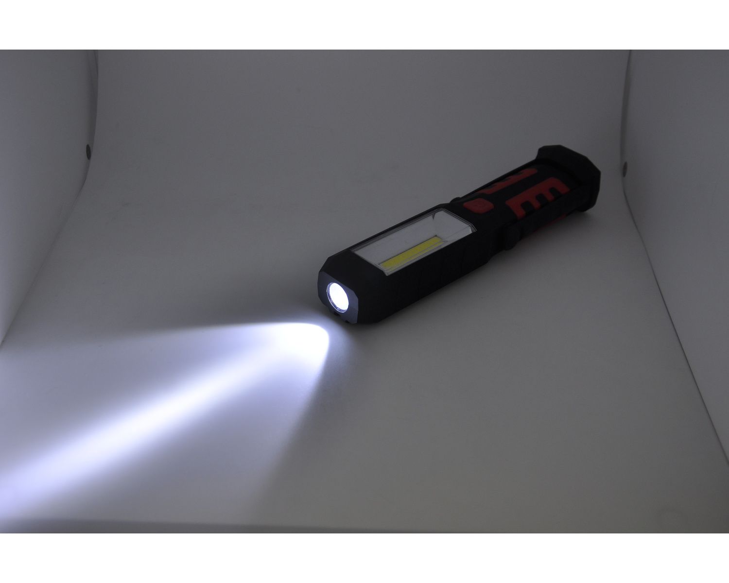 Baladeuse avec support aimanté orientable. Dispose d'un crochet afin de l'accrocher.