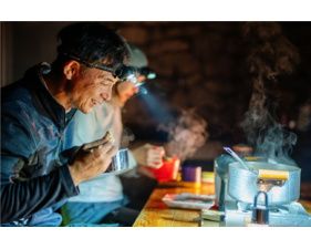 Lampe frontale équipée de 2 sources lumineuses et d’une lumière rouge.