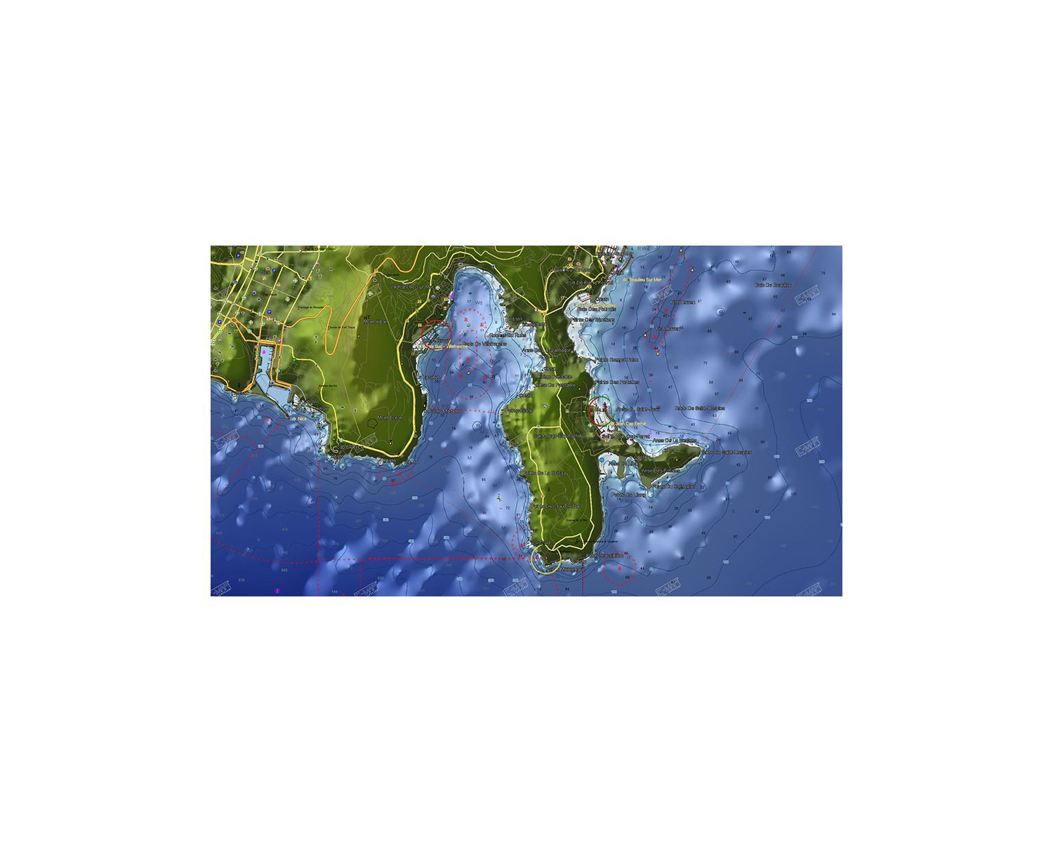 Les profondeurs et les isobathes inclus sont plus denses que sur les cartes marines standard. Elles offrent une image très nette des objets sous l’eau afin d’accentuer la netteté de la zone de pêche et la qualité de la plongée.