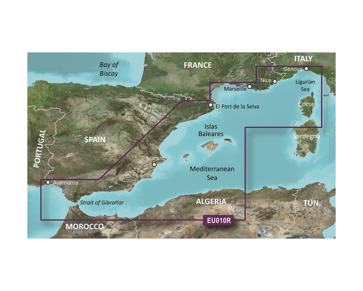 GARMIN BlueChart g3Vision HD regular - VEU010R | Espagne et France Côte méditerranéenne | Autoguidage | Vues 3D aériennes ou sous-marines
