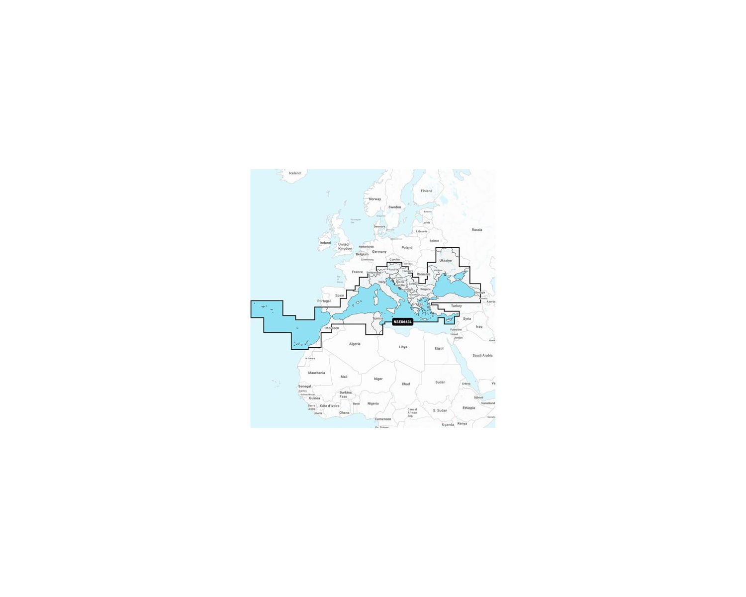 La couverture comprend les Açores, Madère, les îles Canaries, Gibraltar, les îles Baléares, la Corse, la Sardaigne, la Sicile, Malte, la Crète, Chypre, les Dardanelles, le Bosphore, la mer d'Azov, le fleuve Dneiper jusqu'au réservoir de Kyivs'ke, le Danube jusqu'à Passau, en Allemagne, le lac Balaton, le lac de Garde, le lac de Côme et le lac Majeur.